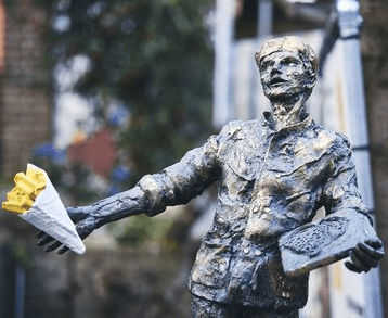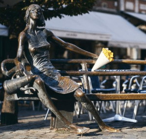 The last week of November celebrates the culinary heritage in Belgium. The national organisation, VLAM is promoting the traditional potato snack, fries, all over the country. Fries are placed on some of the well known statues in different location of Flemish region. They will be placed on the statues for a week.