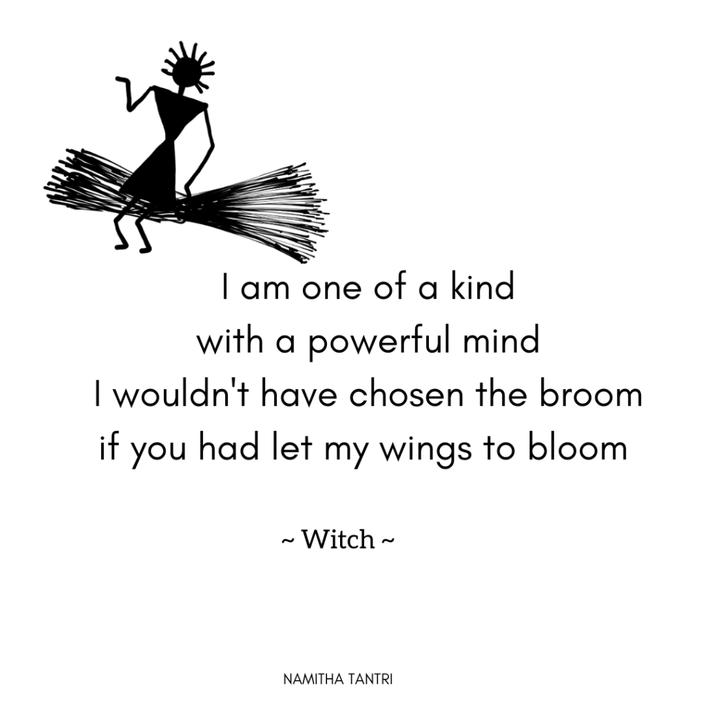 Below I have tried to write a poem, with Warli art of a witch on the bundle of grass.