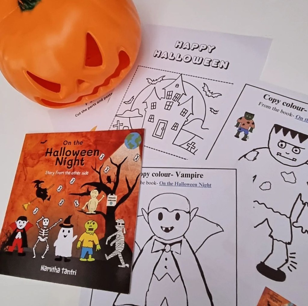 Juice/yoghurt/milk box: Cover the juice or yoghurt boxes with Halloween-themed papercraft designed for kids. Check out the free colouring worksheet for children in my previous blog. Download the free worksheets, colour and wrap around the juice boxes.